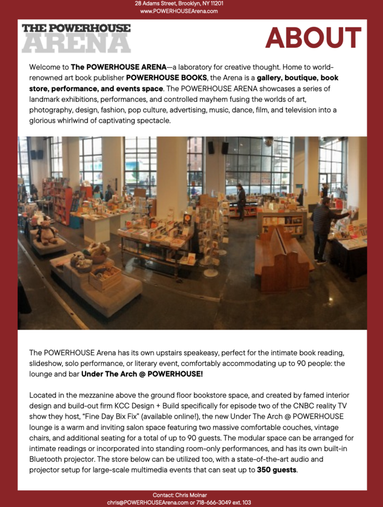Check out our updated Events Kit and contact Chris at chris@powerhousearena.com to discuss your idea!
